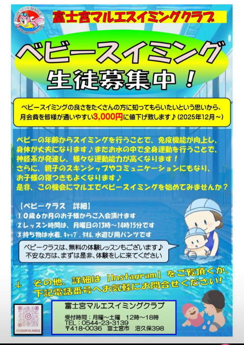 富士宮マルエスイミングクラブのホームページへようこそ。